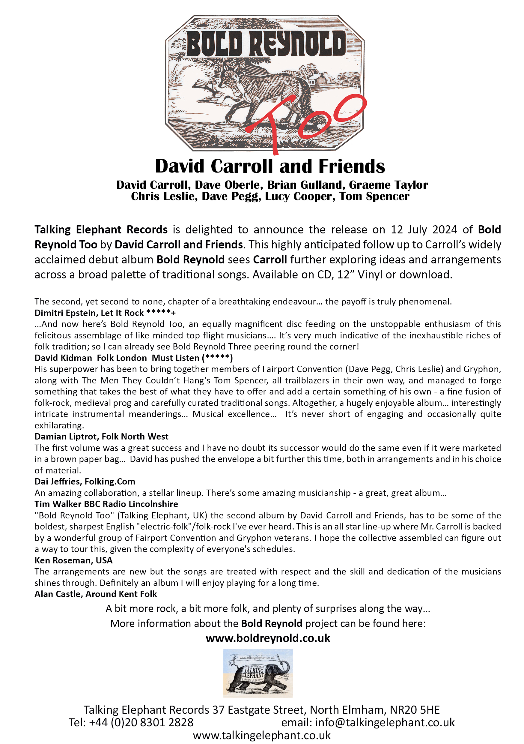 Our annual Winter Tour starts soon (31st January) and runs for 27 shows! We are again delighted that Dave Mattacks is able to join us on Drums & Keyboards this year. We'll be taking in venues from Edinburgh to Exeter and Swansea to Canterbury! Whilst it's impossible to get to everywhere we'd like to, we hope to be close enough that you'd be able to join us.